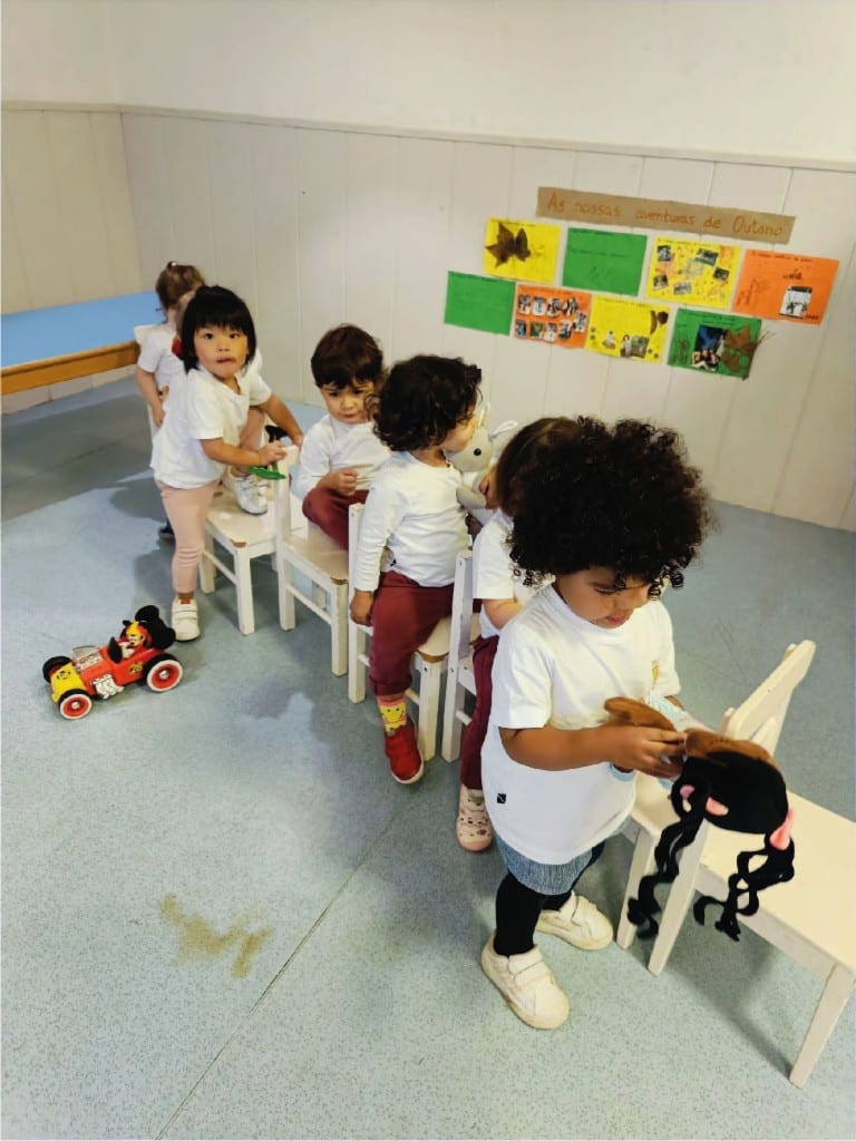 simbólico e a linguagem de forma espontânea. Uma la de cadeiras transforma-se num comboio que osleva em aventuras fantásticas e conversas várias.