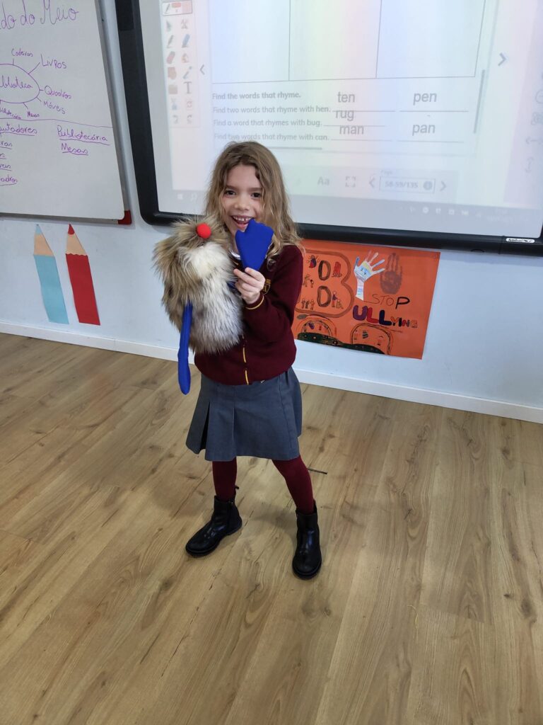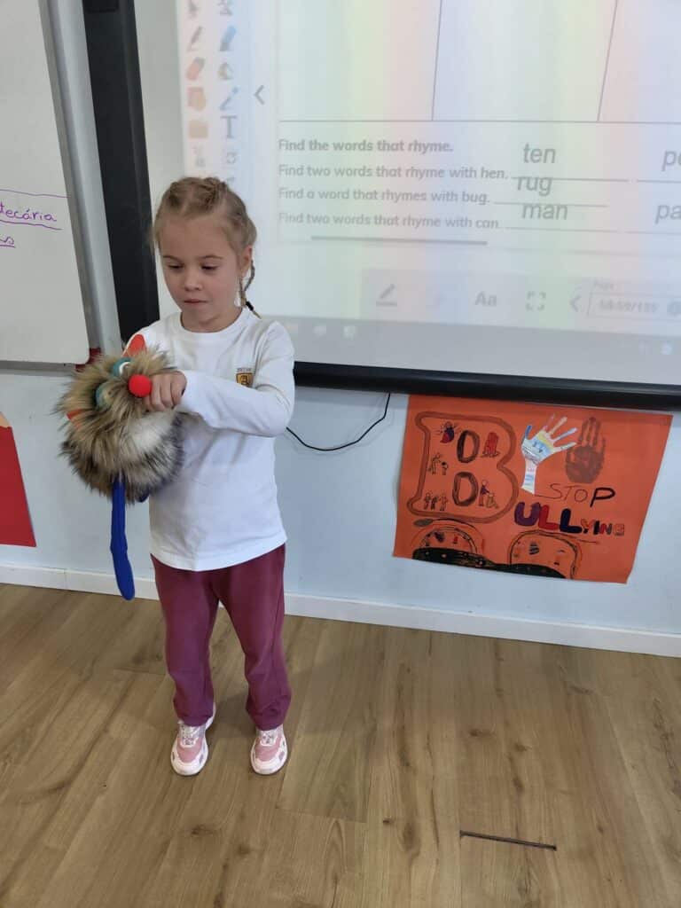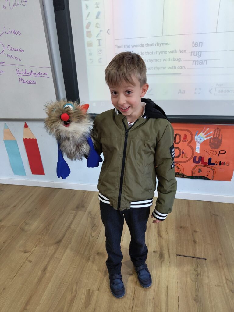 Através de um jogo envolvente, os alunos representaram palavras escolhidas pela Ms Teresa, enquanto o resto a turma tentava adivinhar a palavra e identicar o som da vogal curta. A atividade foi um sucesso, e os alunos divertiram-se imenso enquanto aprendiam!