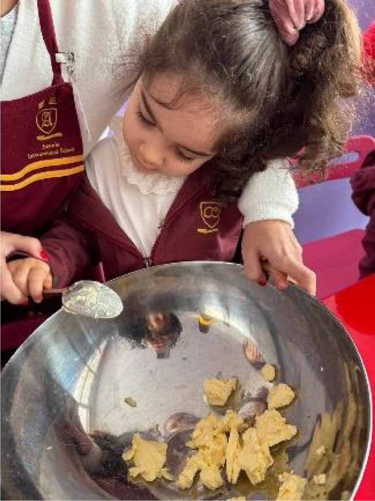While children measure, stir, cut with safe utensils or knead dough, they develop their fine motor skills. Activities like these strengthen hand-eye coordination, which is essential for future school tasks such as writing, drawing and cutting. - Practical and Cognitive Learning